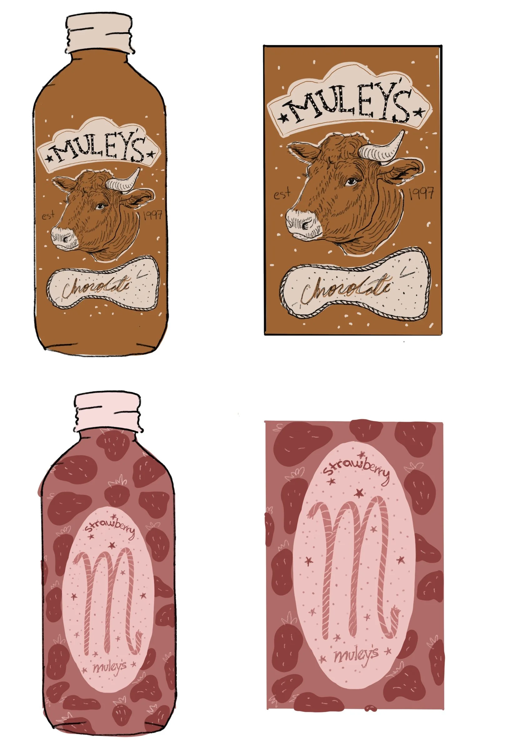 While this is where my project ended, I decided to take this specific brand item and expand. Why stop at Muley’s Milk when it could be Muley’s Dairy Products? With the brand look I created, I explored expanding this brand and created different products such as yogurts and ice creams.